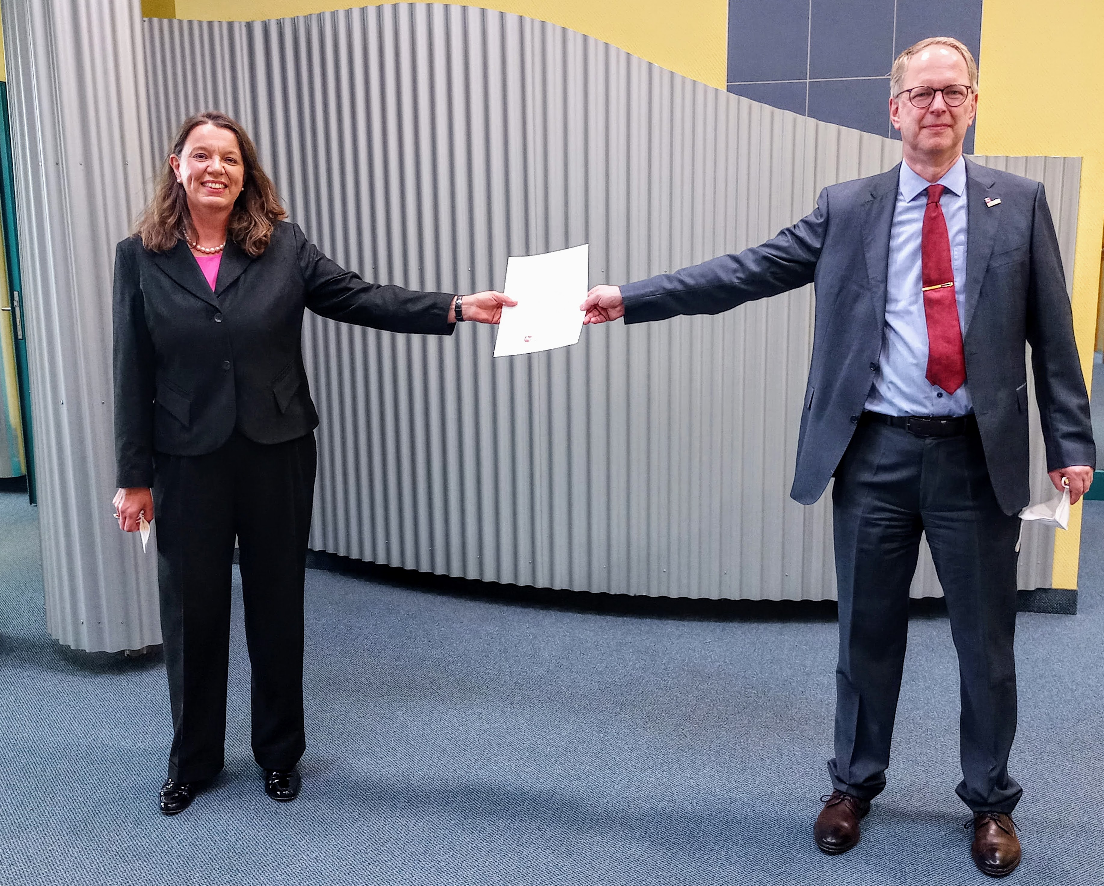 Herr Arntz, selbst einmal Vorsteher des Finanzamts Peine, begrüßte Frau Rother ganz herzlich an ihrer neuen Dienststätte und wünschte ihr für die Leitung des Amtes zu allen Zeiten, insbesondere aber in so stürmischen wie den gegenwärtigen, ein glückliches Händchen bei allen Entscheidungen. „Ich bin mir sicher, dass Frau Rother mit den Beschäftigten des Hauses harmonisch zusammenarbeiten wird und dass sie die anstehenden Aufgaben gemeinsam und im Interesse der Bürgerinnen und Bürger bürgernah und serviceorientiert bewältigen werden. Neben dem Aufrechterhalten des Tagesgeschäfts in der aktuellen Corona-Pandemie werden die Steuerverwaltung in Zukunft insbesondere die weitere Digitalisierung und die Erledigung ihrer stetig anwachsenden Aufgaben bei immer dünner werdender Personaldecke fordern."