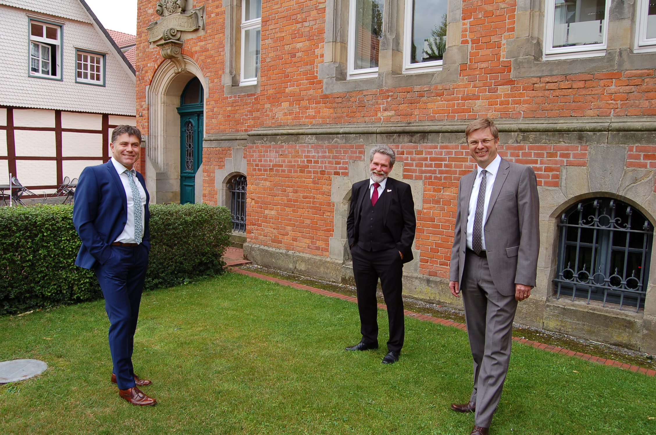 Da wegen der Corona-Pandemie die bei Wechseln von Vorsteherinnen und Vorstehern in niedersächsischen Finanzämtern an sich übliche Feierstunde mit internen und externen Gästen in diesen Monaten leider auch in Quakenbrück nicht stattfinden konnte, hat sich Präsident Meyer dazu entschieden, dem neuen Amtsleiter Herrn Schulte und den Beschäftigten vor Ort im Rahmen eines Amtsbesuchs für die bevorstehenden Aufgaben viel Erfolg zu wünschen. Er nutzte die Gelegenheit, um sich auch nochmal gebührend von dem eingeladenen ehemaligen Vorsteher, Herrn Wernke, zu verabschieden, ihm Dank auszusprechen für seine langjährige engagierte Tätigkeit im Dienst der niedersächsischen Steuerverwaltung und ihm bei den nicht minder schwierigen Herausforderungen in seinem neuen Amt als Bürgermeister alles Gute zu wünschen.