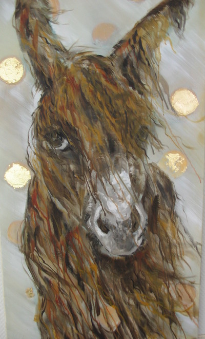 Die Geschichte des Goldenen Esels steht als Symbol dafür, dass die Welt schön, interessant und spannend ist – trotz aller Krisen und Probleme. Der oft als dumm bezeichnete Esel ist, wie man heute weiß, intelligent, pfiffig, nachdenklich und schön. Esel „Emil“ ist der Star und eine tägliche Herausforderung. Er ist im Besitz der Künstlerin und ein immer wiederkehrendes Motiv, das ständig neue Gesichter zeigt, Spannung und Humor im gleichen Maße fördert.